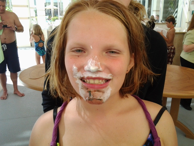 Ayla had just been in a Pie Eating contest!