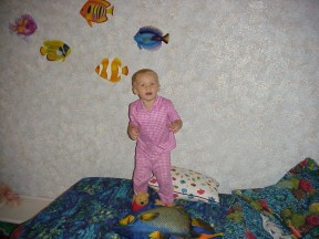 And with my new playmate I got a new room! Here I am jumping on the bed.